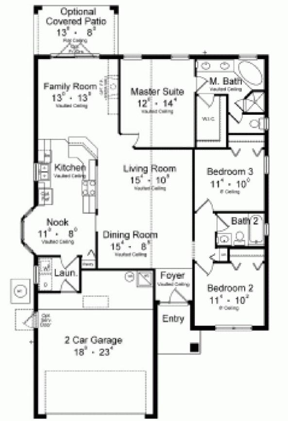 This 1528 sqft single-level house has 3 bedrooms, 2 bathrooms, a master suite, a large living area, a full-size kitchen with a large island, and an attached 2 car garage